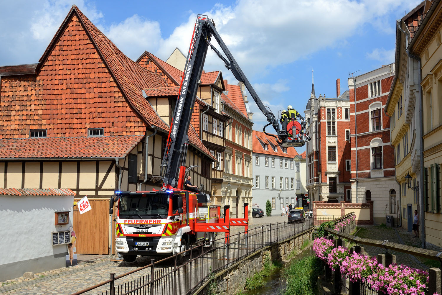 Die Freiwillige Feuerwehr Welterbestadt Quedlinburg und Gernrode, das THW OV Quedlinburg, Arbeiter Samariter Bund – Altkreis Quedlinburg e.V. und Malteser Hilfsdienst Harz, DRK Kreisverband Quedlinburg / Halberstadt e.V. und die Berufsfeuerwehr Magdeburg präsentierten sich neben dem Institut für Brand- und Katastrophenschutz/Landesfeuerwehrschule auf dem Parkplatz der Stadtwerke.