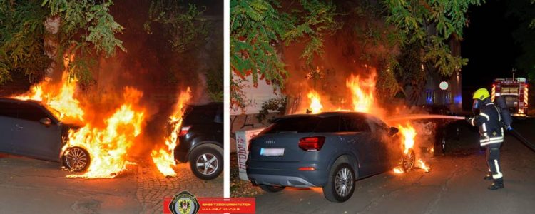Zu einem Pkw-Brand wurde die Ortsfeuerwehr Quedlinburg über ihre Funkmeldeempfänger alarmiert. Auf Anfahrt teilte der Leitstellenmitarbeiter mit, dass das Feuer auf einen zweiten Pkw übergegriffen hat.