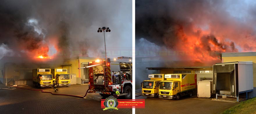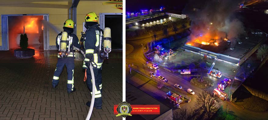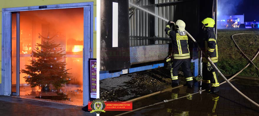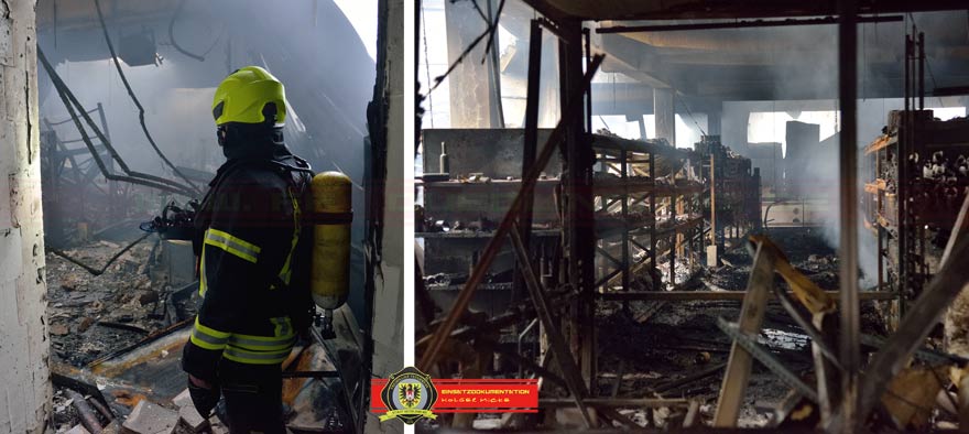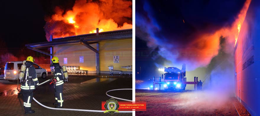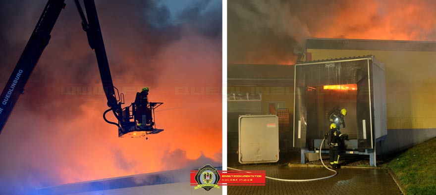 Zu einer ausgelösten Brandmeldeanlage wurde die Ortsfeuerwehr Quedlinburg am Montagnachmittag alarmiert. Auf Anfahrt kam über Funk die Bestätigung eines Brandes in dem Lebensmittelgroßhandel im Bereich der Fleischtheke. Daraufhin lies der Staffelführer des Tanklöschfahrzeuges das Alarmstichwort auf B2 erhöhen. Woraufhin die Ortsfeuerwehr Gernrode alarmiert wurde. Noch vor Eintreffen an der Einsatzstelle war eine schwarze Rauchsäule sichtbar. Bei Ankunft am Einsatzort verließen die letzten Personen das Objekt. Nach der ersten Lageerkundung wurde das Alarmstichwort abermals erhöht, auf B3. Dies hatte zur Folge, dass die Wehren aus Rieder, Ditfurt, Thale und Westerhausen alarmiert wurden. Der erste Angriffstrupp verschaffte sich zutritt in das Objekt und ging zur Brandbekämpfung vor. Zeitgleich baute der Wassertrupp die Wasserversorgung über einen Unterflurhydranten auf. Durch die sehr schnelle Ausbreitung des Feuers im Großmarkt brach der Angriffstrupp den Innenabgriff ab und führte seinen Löschmaßnahmen von außen weiter. Parallel brachte man den Teleskopgelenkmast in Stellung und begann die Löscharbeiten über das Wendestrahlrohr. Die Drehleiter aus Gernrode löschte links des Haupteinganges. Weitere anrückende Kräfte fuhren den Bereitstellungsraum im Gewerbegebiet Groß Orden an. Nach einer weiteren Lageeinschätzung entschied man sich, aufgrund der Brandausbreitung auf das gesamte 6000 m² große Objekt, die Löschmaßnahmen einzustellen und kontrolliert abbrennen zu lassen. Die Kräfte aus Rieder, Ditfurt, Thale und Westerhausen konnten daraufhin die Heimreise antreten. Gegen 12.00 Uhr des Folgetages waren die letzten Glutnester abgelöscht und der Einsatz vorerst beendet.