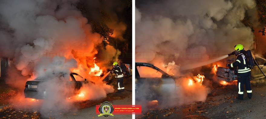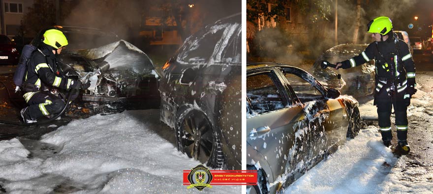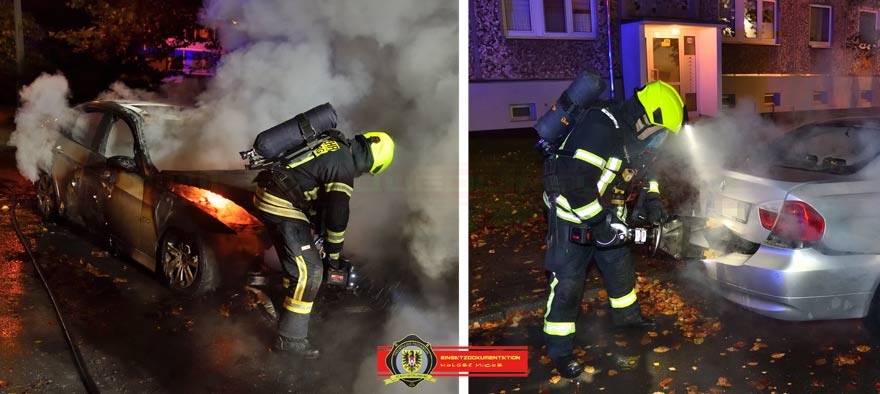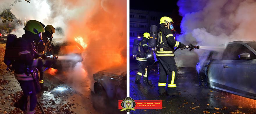 Ein brennender Pkw an einer Hausfassade wurde der Rettungsleitstelle über den Notruf gemeldet. Daraufhin wurden die Ortsfeuerwehren Quedlinburg und Gernrode alarmiert. Auf Anfahrt teilte der Disponent über Funk mit, dass bereits ein zweiter Pkw brennt. Vor Ort angekommen bestätigte sich die Lage halb. Es brannten zwei Pkw, aber sie standen an keiner Hausfassade. Mit dem Schnellangriff wurden die Fahrzeuge abgelöscht. Die Nachlöscharbeiten wurden mit der Schaumpistole durchgeführt.