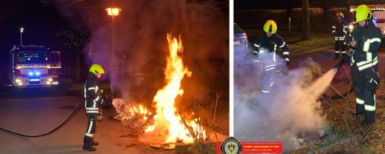 Im OT Quarmbeck brannten 2 1,1m³ Müllcontainer. Auch dort wurde mit dem Schnellangriff das Feuer gelöscht und die Schaumpistole zur Restablöschung eingesetzt.