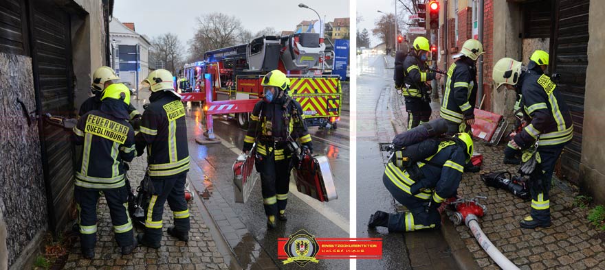 Zu einer eingeklemmten Katze im 1.OG eines Mehrfamilienhauses rückten die Kräfte der Ortsfeuerwehr Quedlinburg am Samstag Mittag aus. Die Meldende wartete vor Ort und wies den Einsatzleiter in die Lage ein.
