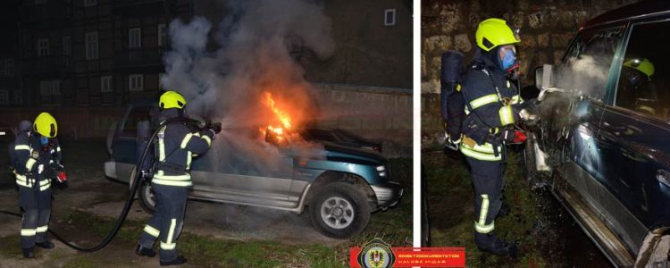 Aus unbekannter Ursache brannte ein Pkw auf einem Parkplatz. Mit dem Schnellangriff wurden die Flammen gelöscht.