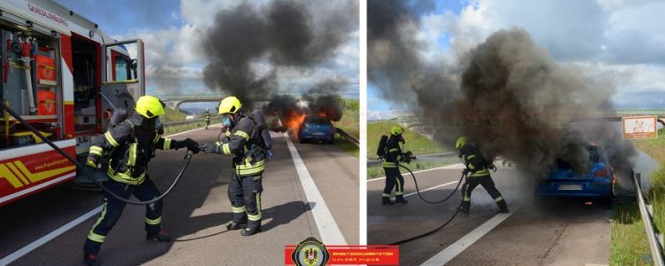 Während der Fahrt auf der Autobahn geriet ein Pkw in Brand. Die Fahrerin konnte den Peugeot rechtzeitig stoppen und sich in Sicherheit bringen. Sie erlitt aber einen Schock und wurde durch den Rettungsdienst betreut. Da die Ortsangabe für die anrückenden Kräfte der Feuerwehr aus Quedlinburg und Ditfurt nicht korrekt war, verzögerte sich deren Eintreffen. Laut Meldung sollte sich der brennende Pkw zwischen den AS Quedlinburg-Ost und Quedlinburg-Mitte befinden. Da dort nichts festgestellt werden konnte, fuhr das nachrückende HLF von Quedlinburg-Mitte in Richtung Thale. Über Funk kam dann die Konkretisierung der Einsatzstelle das sie sich zwischen Hoym und Quedlinburg-Ost befindet. Das TLF welches gerade die Autobahn an der AS Quedlinburg-Ost verlassen hatte wendete und fuhr in Richtung Hoym. Zeitgleich wurden die zuständigen Feuerwehren aus dem Salzlandkreis nachalarmiert. Bei Eintreffen des TLF stand der Peugeot in Vollbrand. Mit dem Schnellangriff ging der Angriffstrupp unter schwerem Atemschutz zur Brandbekämpfung vor. Im Anschluss übernahmen die Wehren aus Hoym, Frose, Gatersleben und Nachterstedt den Ereignisort.