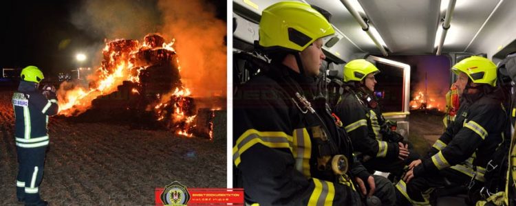 Zu einem Strohballenbrand wurden die Ortsfeuerwehren Quedlinburg und Gernrode am Abend alarmiert. Vor Ort angekommen standen 10 t aufgestapelte gepresste Strohquader in Brand. Um eine Ausbreitung auf einen zweiten Stapel zu verhindern nahm ein Trupp ein C-Rohr vor. Nach Eintreffen des Eigentümers mit einem Radlader zog dieser die brennenden Ballen auseinander. Für die Feuerwehr war der Einsatz damit beendet.