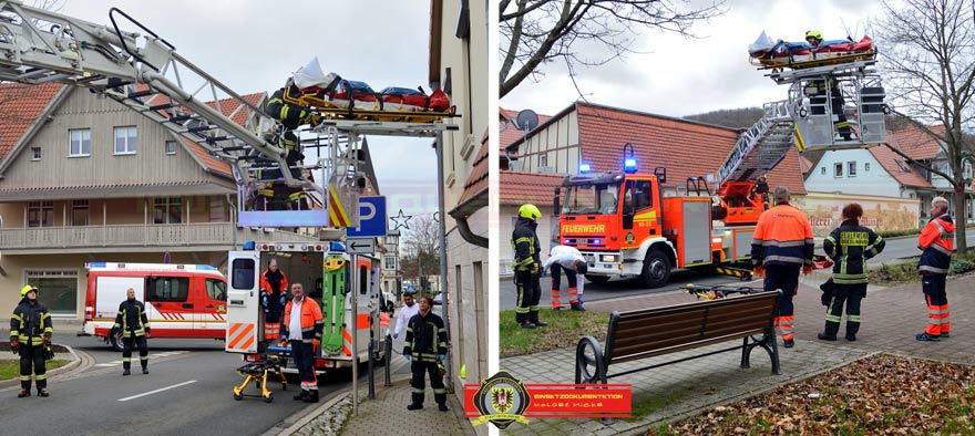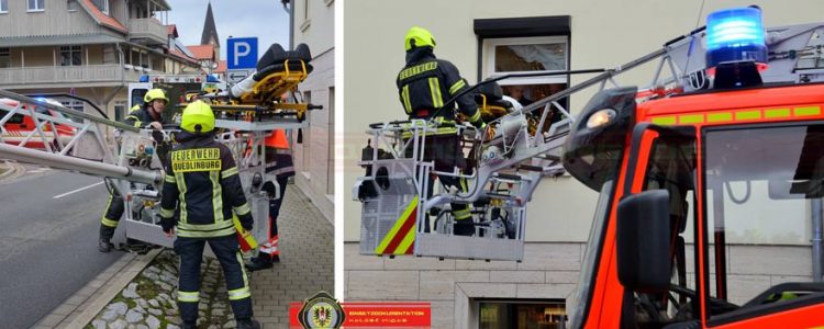 Zu einem medizinischen Notfall kam es in einem Wohn- und Geschäftshaus in Bad Suderode. Aufgrund der Enge des Treppenraumes forderte der Rettungsdienst die Feuerwehr an. Nach Alarm- und Ausrückeordnung wurden die Wehren aus Gernrode und Quedlinburg alarmiert. Über den Korb der Gernröder Drehleiter konnte die Person schonend an den Rettungsdienst übergeben werden.