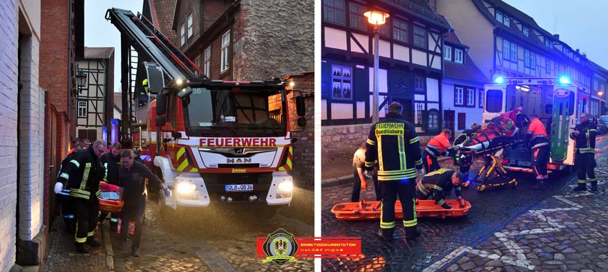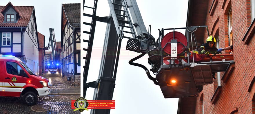 Zur Unterstützung des Rettungsdienstes wurde die Ortsfeuerwehr Quedlinburg am Nachmittag alarmiert. Über den Korb des Teleskopgelenkmastes wurde die Patientin in der Schleifkorbtrage aus der Wohnung gerettet und am Boden dem Rettungsdienst übergeben.