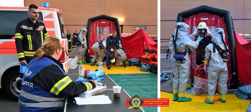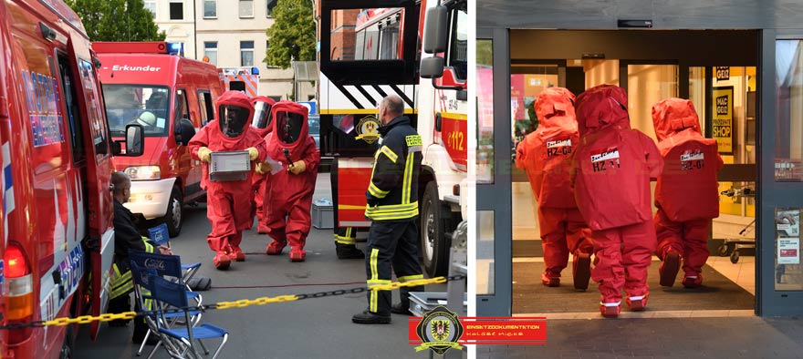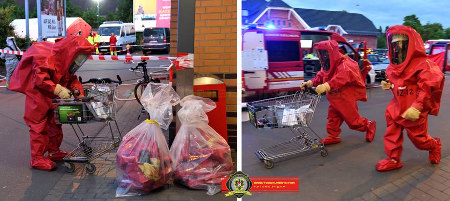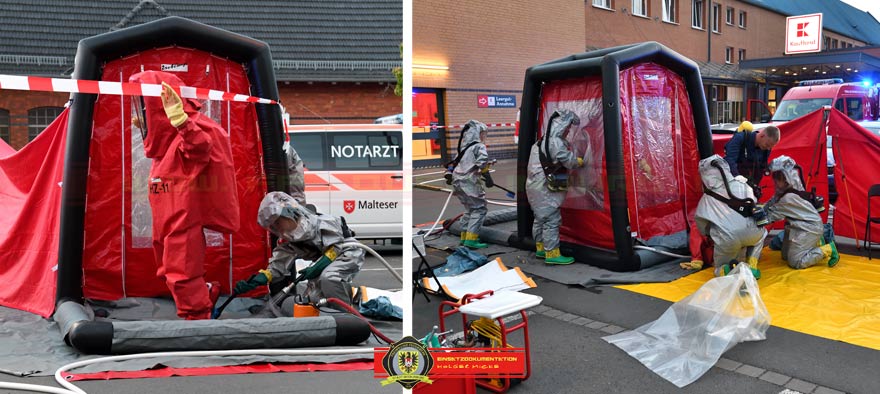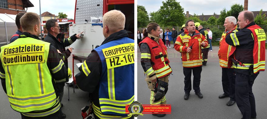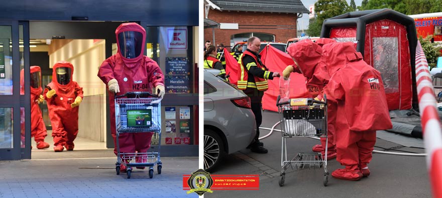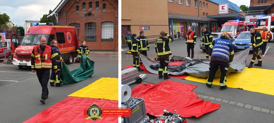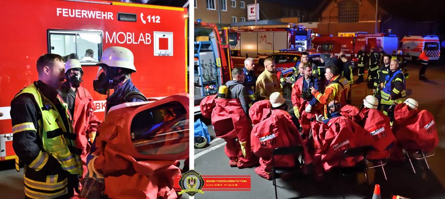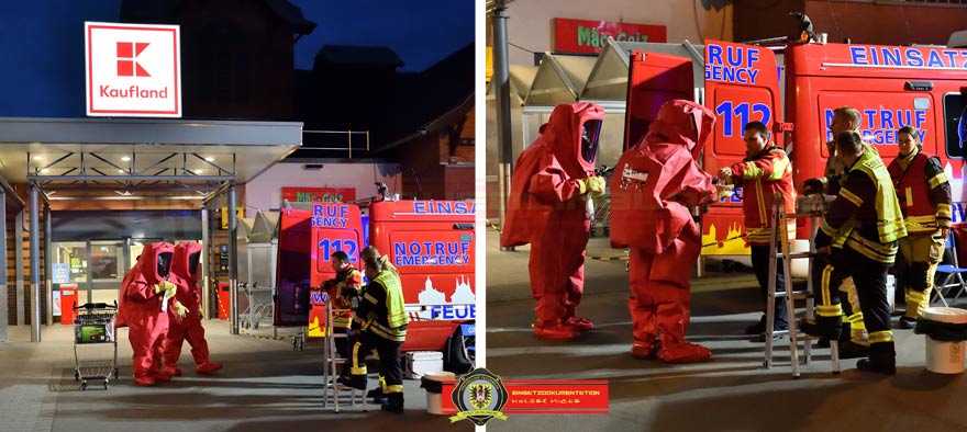 Zu einem undefinierbaren Geruch wurde die Ortsfeuerwehr Quedlinburg am Montagabend in das –Kaufland- alarmiert. Im dortigen Supermarkt kam es bei einigen Kunden und Mitarbeitern zur Reizung der Atemwege und Augen. Bei Eintreffen der Feuerwehr war der Markt bereits geräumt und im Außenbereich eine Geruchsbelästigung wahrnehmbar. Mehrere Verletzte wurden bereits auf dem Parkplatz durch den Rettungsdienst betreut. Zwei Trupps gingen unter schwerem Atemschutz zur Lageerkundung und Personensuche in den Markt, konnten aber nichts feststellen. Der Einsatzleiter forderte daraufhin den ABC-Mess-Erkunder aus Halberstadt nach und lies auf ABC-Mittel erhöhen. Zeitglich traf der leitende Notarzt an der Einsatzstelle ein. Zu diesem Zeitpunkt gab es 4 Verletzte wovon einer stationär aufgenommen wurde. Durch die dynamische Entwicklung der Einsatzlage erhöhte der Einsatzleiter erneut das Alarmstichwort auf ABC-Groß wodurch Spezialkräfte zur Einsatzstelle ausrückten. Bereitstellungsraum war die Kleerswiese. 20 Minuten später wurde das Moblab des IBK Heyrothsberge nachalamiert. Nach Eintreffen der nachgeforderten Kräfte und einer weiteren Lagebesprechung bereiteten die Kräfte die Dekonstrecke vor und mehrere Trupps rüsteten sich mit CSA aus. Nach Absprache gingen die Trupps in den Supermarkt und nahmen verschiedenen Proben in der Drogerieabteilung wo es zu dem Vorfall gekommen war. Die Proben übernahmen die Verantwortlichen des Moblab und analysierten diese vor Ort. Schlussendlich wurde festgestellt, dass ein Rohrreiniger mit einer auf dem Boden aufgebrachten Versiegelung reagierte und dieses ursächlich für die Reizungen der Atemwege und Augen war.