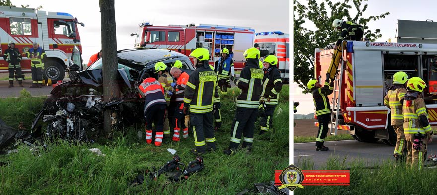Laut Meldung der Polizei war der Fahrer eines Skoda gerade dabei einen Transporter und einen Lkw zu überholen als der Transporter ebenfalls zum Überholen ansetzte und es zur Kollision zwischen den beiden Fahrzeugen kam. Der Skoda kam daraufhin nach links von der Fahrbahn ab und fuhr frontal gegen einen Baum.