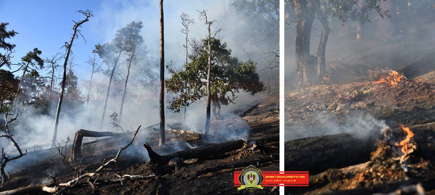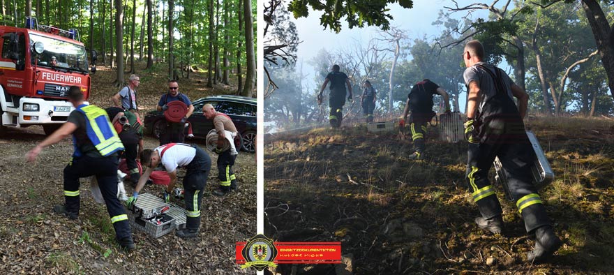 Oberhalb des Klubhauses in Thale brannten aus bislang unbekannter Ursache ca.4000m² Wald. Da die Lage am Anfang sehr unübersichtlich war erhöhte der Einsatzleiter der Ortsfeuerwehr Thale auf Brand 2 und zusätzlich forderte er den Tanklöschzug Ost nach. Nachdem im Bereitstellungsraum am Klubhaus die Kräfte gesammelt wurden, bildeten die Feuerwehren aus Ermsleben, Gernrode, Wegeleben und Quedlinburg den Einsatzabschnitt 4 und fuhren über den Begräbnisforst die Rückseite des Brandes an und bauten eine B-Leitung zur Brandstelle auf. Mit insgesamt 9 D-Rohren und mit Luftunterstützung konnte eine weitere Ausbreitung des Brandes verhindert werden.